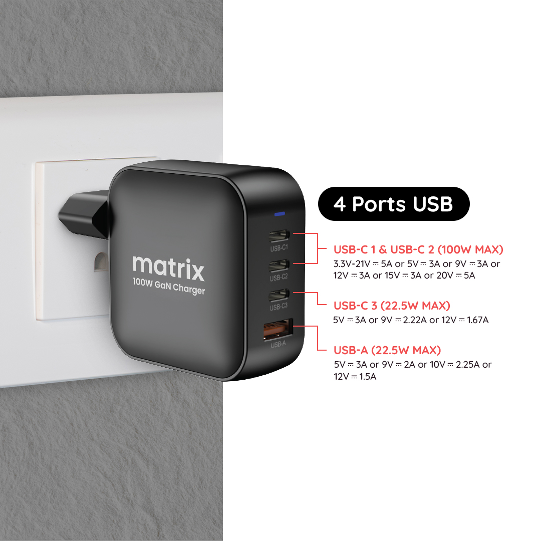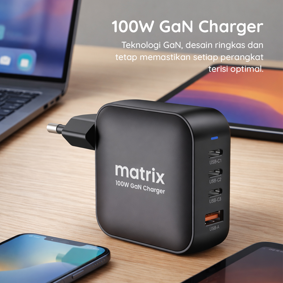 Matrix GaN 100W – Satu adaptor, semua beres. 🔥