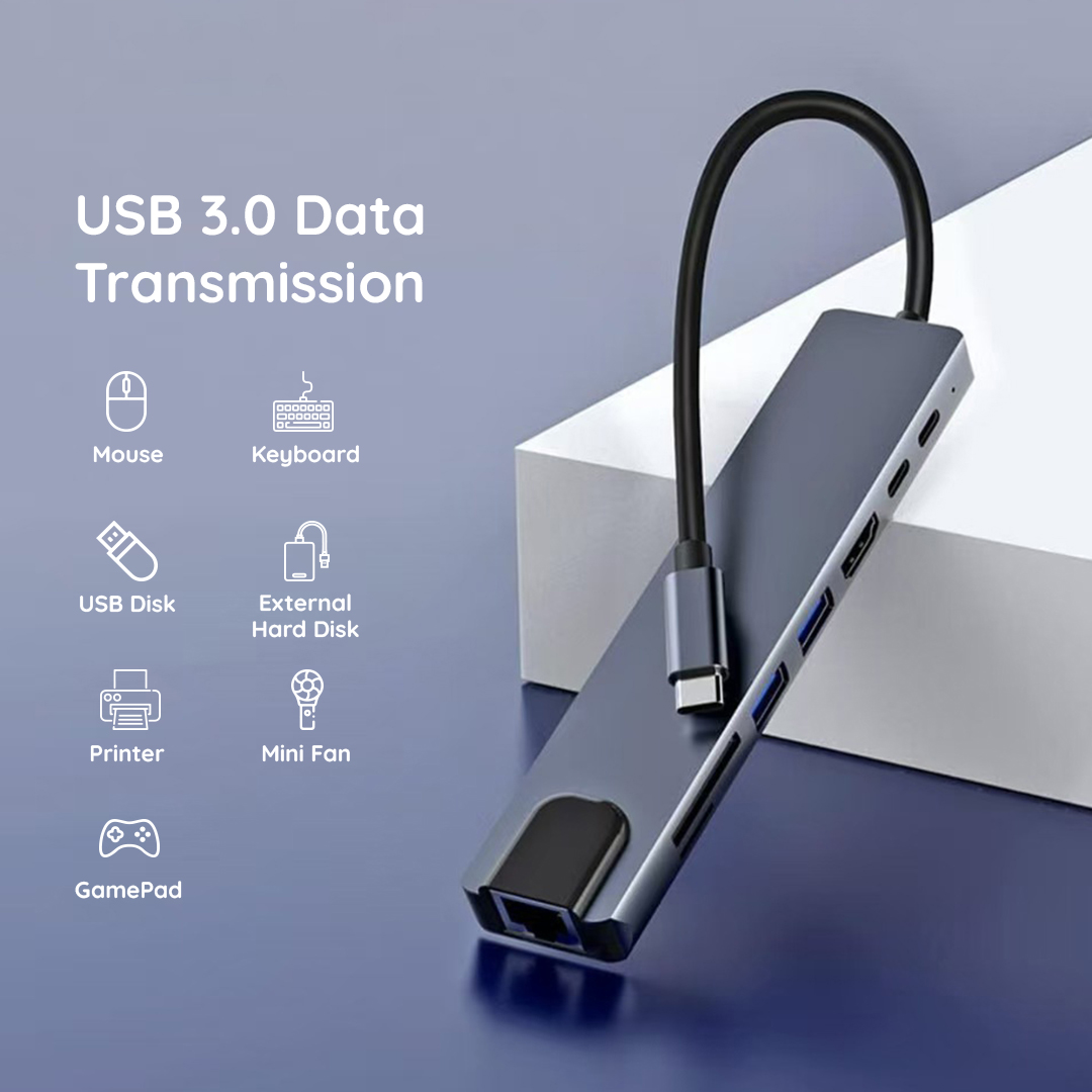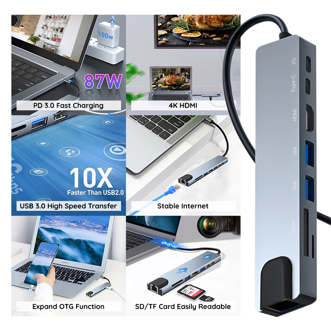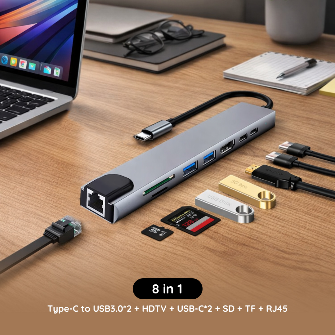 🔌 8 Port Multifungsi – Satu hub untuk semua kebutuhan